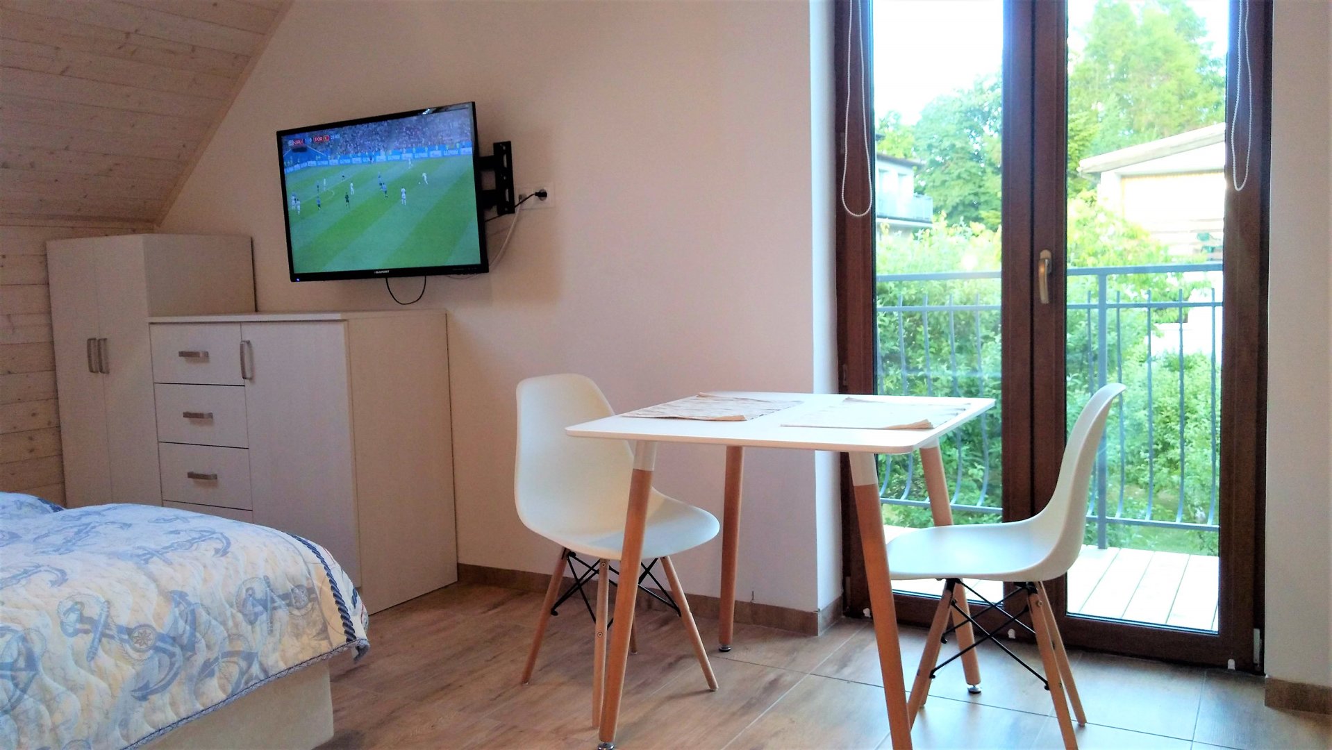 Pokój dwuosobowy z widokiem na ogród i balkonem
